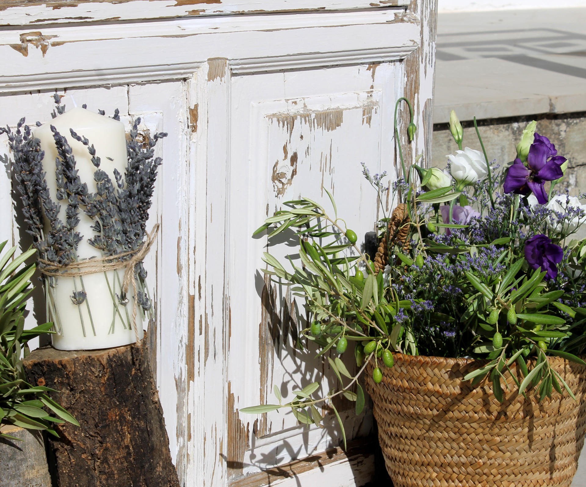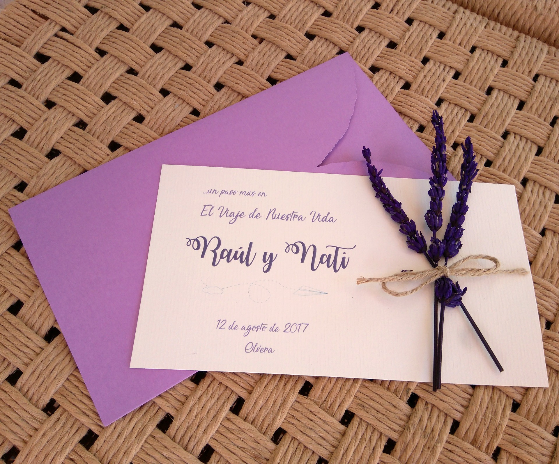 Aquel día, todos los elementos que componían la ceremonia fueron dispuestos en un patio abierto junto a un torreón medieval, siendo el olivo y la lavanda protagonistas del evento. La pasión por los viajes fue el argumento perfecto para crear espacios basados en los tonos violetas y blancos, y que junto a la mimbre, la madera y el papel nos sirvieron de inspiración para hacer del día especial de esta joven y especial pareja uno de los más bonitos del verano. Hacer de maestros de ceremonia fue el mejor regalo que pudimos llevarnos de aquel acontecimiento junto con poder ver de cerca sus caras de felicidad.