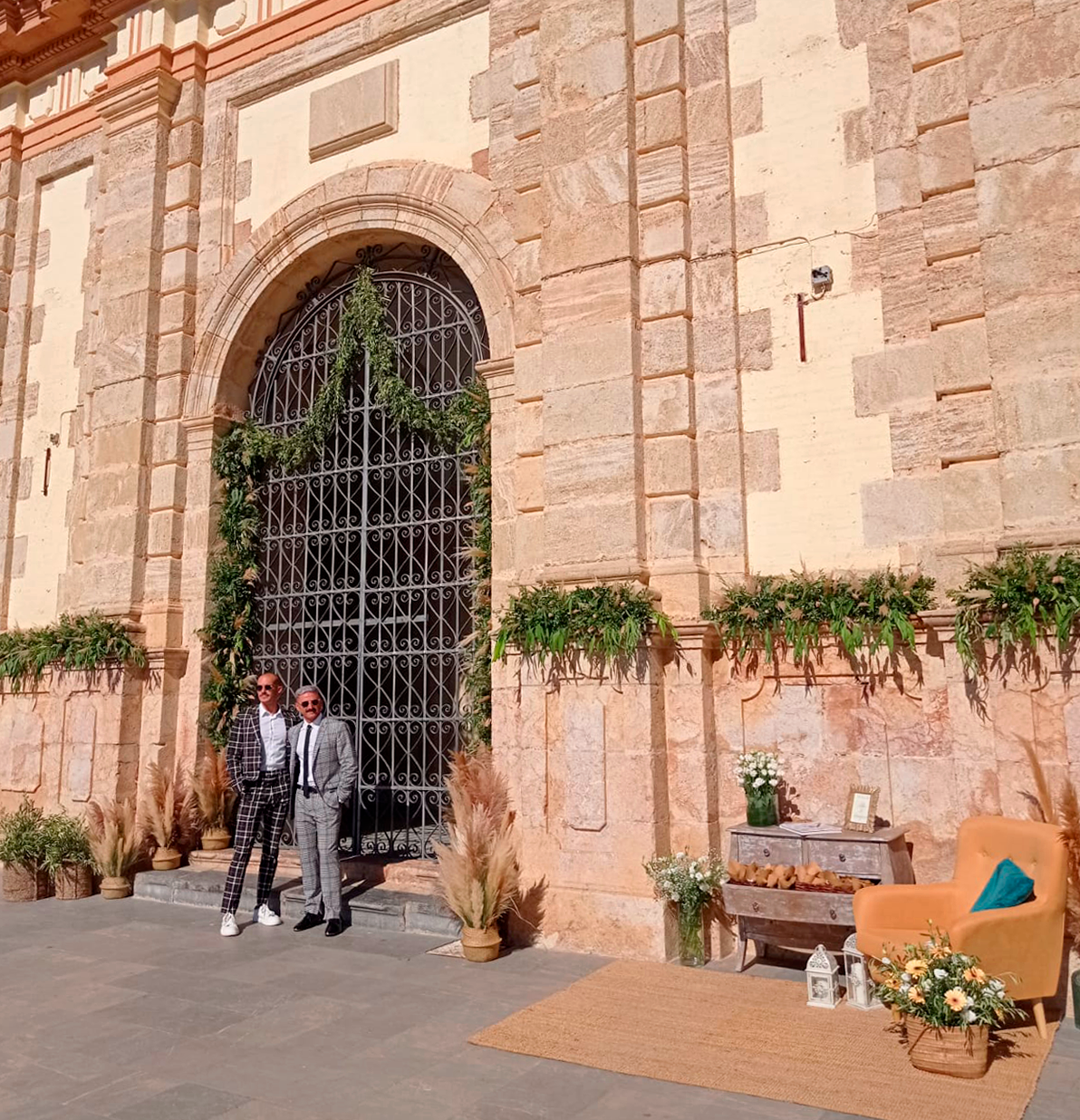 Aquel sábado de mediados del mes de septiembre había amanecido con un sol radiante. La luz incidía directamente sobre la fachada principal de la neoclásica Iglesia de la Encarnación de Olvera. Unos meses antes, nuestros amigos Alba y Joaquín nos habían otorgado el gran privilegio de ser los responsables de la decoración de aquel lugar el día más especial de sus vidas. Desde entonces, disfrutamos como niños esbozando ideas, probando diferentes combinaciones de color y desarrollando prototipos para lograr hacer de aquel día especial un momento único. Nos decantamos por una vegetación de origen autóctono, olivo, lentisco, hinojo y eucalipto, por la preeminencia del color verde, por los materiales orgánicos y la combinación de lo elegante con el estilo más desenfadado. Y, sobre todo, lo hicimos desde el cariño y la emoción.