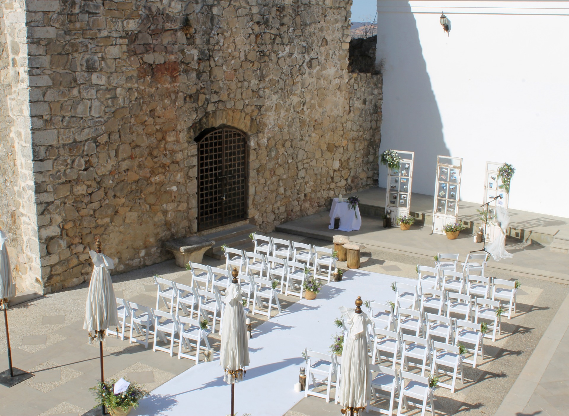 Aquel día, todos los elementos que componían la ceremonia fueron dispuestos en un patio abierto junto a un torreón medieval, siendo el olivo y la lavanda protagonistas del evento. La pasión por los viajes fue el argumento perfecto para crear espacios basados en los tonos violetas y blancos, y que junto a la mimbre, la madera y el papel nos sirvieron de inspiración para hacer del día especial de esta joven y especial pareja uno de los más bonitos del verano. Hacer de maestros de ceremonia fue el mejor regalo que pudimos llevarnos de aquel acontecimiento junto con poder ver de cerca sus caras de felicidad.